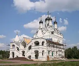 В 1675 году по указу царя Алексея Михайловича на месте деревянного храма началось строительство каменной церкви, которое завершилось в 1677 году. Церковь входила в состав дворцового комплекса путевого дворца. Подобные храмы были построены в других путевых резиденциях царя, Котельниках (по дороге в Коломну) и Алексеевском (также на пути в Троице-Сергиев монастырь).