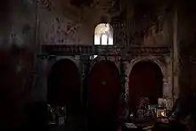 Церковь скудно освещается двумя окнами, расположенными в апсиде и западной стене. Как внутренние стены, так и иконостас покрыты двумя слоями ныне выцветших фресок, первый из которых датируется X веком, а второй слой, закрасивший первый, XIII веком. Деамбулаторий был также украшен фресками, но сохранились лишь их фрагменты, датированные XIII веком. С внешней стороны стены храма имеют скудную декоративную каменную кладку. Западный фасад украшен рельефным крестом и плитой с грузинской надписью из четырёх строк, выполненной смешанным «хутсурийско»-«мхедрульским» шрифтом, палеографически датируемой XI веком и упоминающей женщину-донатора по имени Гурандухт. Церковь также содержит несколько нацарапанных граффити, датированных периодом от X до XVIII века[2].