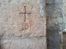 Древнее граффити внутри церкви («голова Адама»)