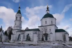 Композиционное ядро строения составляет кирпичный храм типа «восьмерик на четверике» с двусветным основанием и гранёной апсидой, наделённой сдержанной, несколько однообразной декорацией стиля барокко.