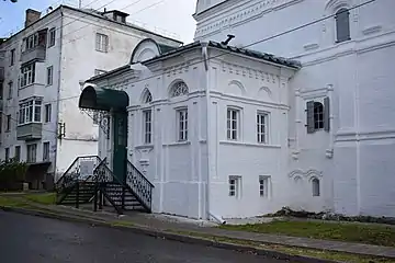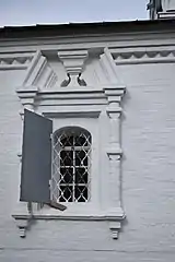 Трапезная и притвор, построенные позднее, отличаются другими декоративными элементами. Так, наличники окон трапезной завершены разорванными фронтонами, а окна придела — типичными для узорочья тройными килевидными кокошниками.