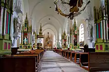 В храме находится несколько старинных икон: «Богородица Розария» и «Иосиф с младенцем» (начало XIX в.), «Матерь Божья Ченстоховская» (1878), а также деревянная скульптура «Распятие» (XIX в.).