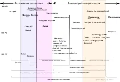 - Христологическая доктрина, близкая к халкидонскому богословию и тяготевшая к Византии, основоположником которой в Церкви Востока являлся руководитель Нисибинской школы Хнана Адиабенский[155].