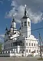 Огромная двухэтажная церковь с торжественной монументальной композицией и богатым разнообразным декором принадлежит к лучшим образцам «сибирского барокко». Все её объёмы — крупный четверик с пятигранной апсидой, два придела с полукруглыми апсидами, двухэтажный притвор с палатами — слиты воедино, образуя плотный, весомый монолит. Впечатлению слитности способствуют срезанные верхние углы четверика, украшенные пышными картушами с круглыми люнетами. Благодаря этому четверик органично, скульптурно переходит в сложное купольное завершение.