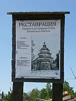 К моменту начала реставрации в июле 2003 года церковь находилась в полуразрушенном состоянии. Верхняя часть храма (два восьмерика из трёх) рухнула в 1960-х годах. Реставрация велась по методу полной переборки, разработанному архитектором-реставратором, лауреатом Государственной премии РСФСР Александром Поповым, с применением исторических строительных инструментов и технологий.[3]