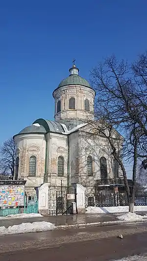 Каменная, однокупольная, крестообразная в плане с короткими раменами (прямоугольными объёмами), к которым с запада и востока примыкают равновысокие экседры (ниши), завершающиеся полукуполами. Уникальная черта украинской культовой архитектуры — двухэтажность: на первом этаже располагается «тёплая церковь», на втором — «холодная». В стилевом отношении относится к переходному этапу от позднего барокко до классицизма. Вход с западной стороны к которому ведут ступени на второй этаж. Второй этаж южной стороны имеет балкон на опорах. В интерьере частично сохранилась масляная роспись 18 и 19 веков.