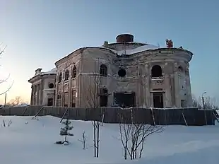 В послевоенные годы расширили ряд оконных и дверных проёмов, а снаружи соорудили две примитивных пристройки: с востока рядом с алтарём — туалет и с запада на месте непостроенной колокольни — котельную. Стены между боковыми овалами трапезной и основным объёмом были заложены, в результате фасад стал уступать в рельефности и выразительности. Здание использовалось под кабинеты для практических занятий Белозерского СПТУ[2][4][5].