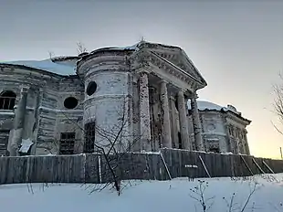 В начале 1930-х годов облик храма был искажён: верхняя часть ротонды была разобрана, были сооружены низкие деревянные перекрытия, дополнительные стены между приделами и трапезной, разрушен южный портик и открытые лестницы перед боковыми входами, в апсиде устроены ворота для въезда автомашин — здание было приспособлено под машинно-тракторную станцию[4].