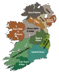 Церковь Ирландии, придерживающаяся епископальной системы управления, состоит из 12 диоцезов, возглавляемых епископами и подразделяющихся на приходы. Пять диоцезов в южной части острова (Кашел и Оссори; Корк, Клойн и Росс; Дублин и Глендалох; Лимерик и Киллало; Мит и Килдар) объединены в провинцию Дублина, а семь диоцезов северной части (Арма; Клохер; Коннор; Дерри и Рафоу; Даун и Дромор; Килмор, Элвин и Ардаг; Туллам, Киллала и Ахонри) в провинцию Армы. Обе провинции возглавляются архиепископами, из которых архиепископ Дублина (Майкл Джексон с 2011 года) титулуется Примасом Ирландии, а архиепископ Армы (Алан Харпер с 2007 года) — Примасом всей Ирландии, являясь первым иерархом церкви и её главой, хотя не имеет реальной власти.