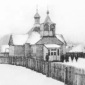 Храм представлял собой небольшое квадратное в плане деревянное строение под двускатной крышей. Над входом находилась небольшая звонница с главкой с крестом и небольшим колоколом. Одновременно в храме помещалось 49 человек.