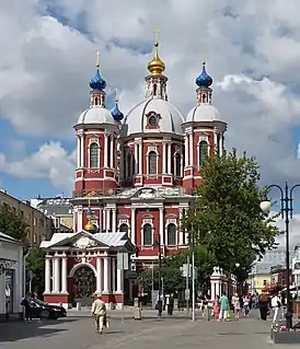 Но не церковь Пятницы-Прасковеи поражает и останавливает ваш взгляд с кремлёвской вершины, когда вы, отклоняя постепенно глаза от юго-востока, ведёте их по направлению к югу, а пятиглавая, великолепная церковь Климента папы римского. Перед ней вы остановитесь и идя по Пятницкой: она поразит вас строгостью и величавостью своего стиля, своею даже гармониею частей… Но особенно выдаётся она из бесчисленного множества различных узорочных церквей и колоколен, тоже оригинальных и необычайно живописных издали, которыми в особенности отличается юго-восточная часть Замоскворечья…[7]