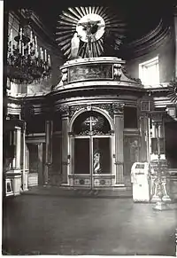 Находившееся ранее за престолом большое паникадило в двенадцать свечей было выточено из янтаря и слоновой кости императрицей Марией Фёдоровной.