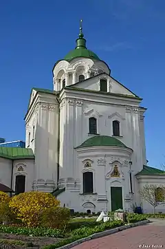 Первое документальное упоминание деревянной «наберезской» церкви имеется в люстрации 1552 года. В 1613 году письменно упомянут священник Климентий Набережский. Есть документальные известия, что в 1677 году вместо сгоревшей церкви соорудили новую деревянную церковь на средства киевского войта Ждана Тадрины. После того как и этот храм обветшал, на противоположной стороне улицы построили уже каменный храм, и некоторое время деревянная и каменная церкви сосуществовали. Деревянную церковь уничтожил один их частых подольских пожаров в 1799 году.