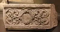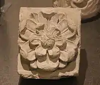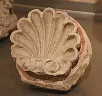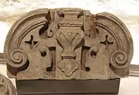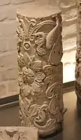 - Белокаменные детали декора — балясина, колонны, фрагмент киота и раковины выставлены для обозрения в экспозиции музея Коломенское.