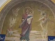 Главной святыней храма стала чудом уцелевшая до наших дней алтарная фреска образа Пресвятой Богородицы «Благодатное Небо». Написана она была в алтаре за престолом. На образе Богоматерь изображена с Младенцем на левой руке и нимбом овальной формы одним на двоих, стоящая на облаке в окружении восьми шестикрылых Серафимов. Младенец Христос ручками как бы обнимает весь мир. Эта фреска является списком заалтарной иконы Образа Пресвятой Богородицы «Благодатное Небо», созданной в Киеве русским живописцем Виктором Михайловичем Васнецовым во Владимирском соборе с 1885—1896 гг.[2] Этот образ искусствоведы называют «Васнецовской Богоматерью». Сам Виктор Михайлович считал эту работу главным делом своей жизни. По завершении росписи кафедрального Владимирского Собора Васнецов произнес фразу: «Я поставил свечку Богу»[3].