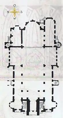 В то время как снаружи здание возвышается с востока на запад, внутри с точностью наоборот: арки центрального корпуса развиваются во всём своём великолепии, приближаясь к алтарю (с запада на восток).