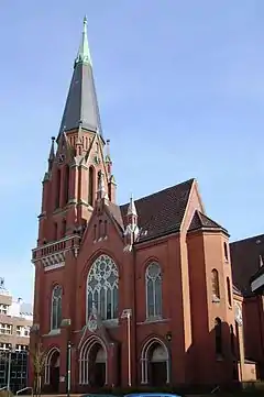 Построена в 1911 году по проекту архитектора Генриха Флюгеля (нем. Heinrich Flügel ) в стиле неоготика по типу зального храма, освящена епископом Адольфом Бертрамом.