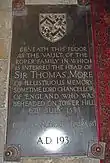 Дочь Томаса Мора, Маргарет, сняла голову своего отца с пики на Лондонском мосту и захоронила её в семейном склепе своего мужа, Уильяма Ропера.[6] Семья Роперов жила неподалеку от нынешней улицы Святого Дунстана. То, что осталось от их дома, называется Воротами Ропера. Ныне это место отмечено мемориальной табличкой.