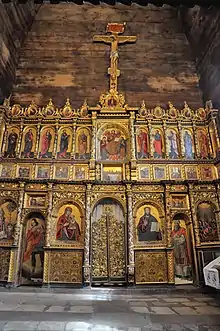 Первоначально дубовые срубы церкви были расписаны народными художниками. В интерьере памятника сохранился пятиярусный иконостас, сооружённый в 1650 году на средства Рогатинского братства. Иконостас имеет уравновешенное архитектоническое строение, пышно декорирован полихромной орнаментальной резьбой. Иконографическая программа живописи выполнена при активном участии братства: в иконописные изображения введены новые для украинского искусства темы и образы. К лучшим икон храма принадлежат композиции на диаконовых вратах («Архангел Михаил» и «Мельхиседек»), иконы Христа и Богоматери, сцены цокольного яруса.