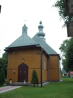 Деревянная церковь построена в характерном для западнолемковской архитектуры трёхкупольном стиле XIX века. Храм разделяется на башню, неф и пресвитериум.