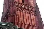 Башня не всегда была ярко-красного цвета; в письменных источниках упоминаются желтый цвет (начало XVII-го века) и белый (начало XIX-го века). Церковь реставрировалась несколько раз: в 1713 году (городской архитектор Жиль Дуайен), затем в 1774 году (башня восстановлена и выкрашена в красный цвет), примерно в 1800 году (внутренняя побелка), в 1822 году (башня восстановлена и выкрашена в красный цвет) и в 1843-44 годах (внутренний неф). В 1877-85 годах была проведена капитальная реставрация под руководством Питера Кёйперса (в том числе реставрирована крыша башни), а в 1909-12 годах — реставрация под руководством Виллема Шпренгера (вход с площади Фрейтхоф замурован, баптистерий отреставрирован). В 1967 году и, наконец, в период 1981-85 годов церковь была снова реставрирована под руководством Ваалко Дингеманса (в 1967 году интерьер, а позже и башня; стоимость реставрации 4.3 миллиона гульденов).[4][5] Во время последней реставрации башня была снова перекрашена в красный цвет в 1983 году. [прим 2]