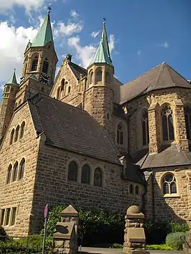 Исследователи полагали, что некоторые фрагменты предыдущей церкви, стоявшей на месте современного здания и разрушенной в 1914 году, были построены ранее XIV века. Закладка первого камня в основание современного церковного здания, постройка которого была завершена в 1917 году, состоялась 12 июля 1914 года; при этом строительные работы были отчасти отложены в связи с началом Первой мировой войны. Проект здания в «рейнской традиции» был выполнен аахенским архитектором Йозефом Бухкремером (нем. Joseph Buchkremer, 1864—1949). В итоге, церковь была освящена епископом Падерборна Генрихом Хелингом фон Лансенауэром (нем. Heinrich Haehling von Lanzenauer) 11 ноября 1917 года[1].