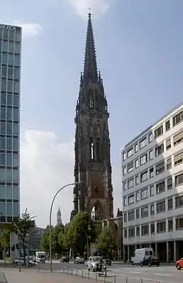 После разрушительных бомбардировок Гамбурга («Операции Гоморра») в конце июля 1943 года, от церкви осталась только башня (147 м)[2].