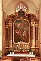 В XVIII веке убранство церкви было обновлено в стиле барокко. Построены кафедра с изображением Папы Бенедикта XIII и семь алтарей. Пять из этих алтарей сохранились и сегодня, некоторые с обновленными алтарными картинами. Главный алтарь был подарен Марией Терезией в 1760 году. В 1727 году был построен первый орган. Наконец, что сегодня трудно понять, большинство окон было замуровано.