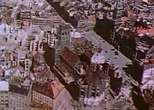 Церковь была серьёзно разрушена во время Второй мировой войны.[6] 25 февраля 1945 года две фугасные бомбы попали в церковь во время воздушного налёта. Сгорели башни, наружные стены хоров - реконструкция казалась невозможной. Из финансовых соображений хотели восстановить только башню-символ и часть хора, а остальное снести, но по инициативе двух настоятелей храма полная реставрация началась в 1946 году. Внешний вид церкви восстановили к 1954 году, а работы по восстановлению интерьера продолжались до 2000 года.