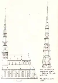 В 1721 году в башню церкви Святого Петра ударила молния, вызвавшая пожар, в тушении которого принимал участие находившийся в то время в Риге российский император Пётр I. Однако потушить пожар не удалось — шпиль выгорел практически полностью и обрушился. По счастливой случайности, горящий шпиль не рухнул на город, а «сложился сам в себя», не причинив дополнительных разрушений (легенды приписывают это молитвам Петра I[6]). В этом же году, по именному указу Петра I[6], были начаты работы по воссозданию шпиля, окончившиеся только через 20 лет, в 1741 году. Восстановленный шпиль просуществовал ровно два столетия и был уничтожен в день памяти Святого Петра (по григорианскому календарю), 29 июня 1941 года — в башню попал снаряд одной из немецких гаубиц, обстреливавших осаждённый город. Восстановление шпиля было окончено лишь в 1973 году. Новый шпиль своими формами и размерами полностью повторяет прежний, но выполнен из металла. В шпиле были оборудованы две смотровые площадки (на высотах 57 и 71 метр), а для облегчения доступа посетителей на них были установлены лифт и железобетонные лестницы.