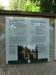 Информационная доска о церковной общине на стене кладбища