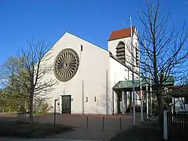 Население района Замдорф быстро росло в эпоху национал-социализма. После Второй мировой войны, с 1949 года, священник Хардуин Бруннер из мюнхенской церкви Святого Георгия, проводил службы в большом помещении бывшего фермерского дома, перестроенного в качестве временной часовни по адресу Эггенфельденерштрассе 51; здесь могли размещаться до 40 человек. После того как семья Обермайер пожертвовала землю на Эггенфельденерштрассе под будущую церковь, началось проектирование нового храма. Позже данная земля была обменена на участок на Фридрих-Эккарт-штрассе. Окончательное решение о строительстве было принято в 1953 году.