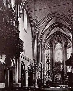 В середине XIV века три полукруглые, романские апсиды заменяются готическим хором, а также ряд других частей церкви перестраивается в готическом стиле, например, северный боковой продольный неф. В южном боковом продольном нефе и сегодня можно видеть архитектурные элементы романского стиля. Слева и справа от хора на средства богатых горожан были построены две маленькие капеллы. Южная капелла находится возле современного входа в ризницу и носит имя своего основателя — капелла Берсвордта.