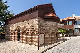 Церковь Святой Параскевы, XIII век, Несебыр — однонефная церковь с характерным нартексом и алтарной апсидой. Конструкция крыши не сохранилась. Можно предположить, что церковь была купольной. Вероятно, над нартексом возвышалась башня-колокольня. Кладка смешанная — кирпичная и каменная, глыбы тщательно отёсаны. Фасады решены в керамико-пластичном стиле.