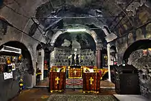 Храм, возведённый на месте бывшего римского религиозного здания, впервые упоминается в XVI веке. В нём сохранились настенные росписи XIV, XV, XVII и XIX веков, изображающие библейские сцены.