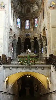 Неф церкви был полностью реконструирован в XIII столетии в стиле анжуйской готики по образу кафедрального собора, который находится рядом. От той эпохи осталось несколько витражей. Тот, на котором представлен Страшный суд был преподнесён графом Альфонсом де Пуатье. В романском хоре можно увидеть красивое представление пророка Даниила. В склепе находится могила Радегунды, существующая очевидно с X века, а также Святой Агнессы и Святой Диссиоли. К южной стене церкви прилегает зал конца XII века.