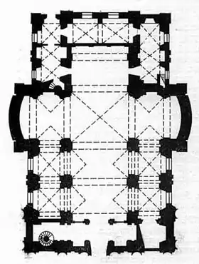 Храм Святой Троицы — памятник архитектуры стиля барокко с элементами классицизма[1]. Представляет собой трёхнефную базилику с небольшим трансептом и прямоугольной апсидой. По бокам главного фасада располагаются две двухъярусные башни, завершенные полусферическими куполами с декоративными фонарями. Между башнями находится фигурный щит, изогнутые фасады боковых крыльев трансепта также завершены фигурными фронтонами. Вход оформлен порталом XIX века в стиле классицизм. Цилиндрические и крестовые своды нефов держатся на подпружных арках между ними[1].