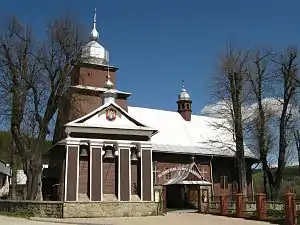 Деревянная церковь построена в характерном для западнолемковской архитектуры трёхкупольном стиле XVII века. Вход в церковь находится сбоку. Над нефом напротив входа установлена небольшая барочная с фонарём. Возле башни находится звонница с тремя небольшими колоколами .