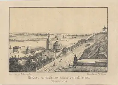 Ивановский съезд и церковь Симеона Столпника. Литография Д. Я. Быстрицкого (1850-е)