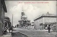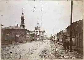 ![]() Фотография Соборной (ныне Октябрьской) улицы Ельца, на заднем плане Сретенская церковь. Конец XIX начало XX века | |