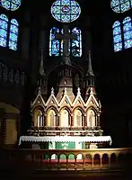 Здание построено в неоготическом стиле, в плане имеет форму латинского креста. Главный фасад имеет три портала, над которыми возвышаются две башни высотой 68 м. Наружная поверхность из красного кирпича, декорирована глазурованным кирпичом. Церковь сочетает в себе неоготические стрельчатые арки и круглые арки в романском стиле. Длина здания составляет 47 м, высота сводов — 17 м[4].