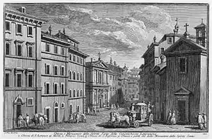 ![]() На переднем плане, справа церковь св. Лаврентия на горах, гравюра работы Джузеппе Вази | |
