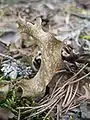 Плодовые тела образуются на концах расширенных лопастей. Блюдцеобразной формы, коричневого цвета, плоские или слегка вогнутые, 1,5 см в диаметре, со слегка зубчатым краем.
