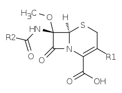 Цефамицины - это группа β-лактамных антибиотиков. Они очень похожи на цефалоспорины, а цефамицины иногда классифицируются как цефалоспорины. Как и цефалоспорины, цефамицины основаны на цефемах ядра. В отличие от большинства цефалоспоринов, цефамицины являются очень эффективным антибиотиком против анаэробных микробов. Первоначально цефамицины производились Streptomyces , но производились и синтетические. Цефамицины имеют метоксигруппу в положении 7-альфа. Кроме того, было показано, что цефамицины стабильны в отношении организмов, продуцирующих бета-лактамазы расширенного спектра (БЛРС), хотя их использование в клинической практике по этому показанию недостаточно.
