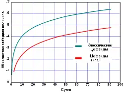 Большинство цефеид можно отнести к одному из двух типов: к классическим цефеидам, которые принадлежат плоской подсистеме Галактики и относятся к звёздному населению I, либо к цефеидам II типа, которые относятся к сферической подсистеме Галактики и населению II. Такое деление цефеид на два основных класса ввёл Вальтер Бааде в 1952 году. Он обнаружил, что цефеиды не подчиняются единой зависимости период — светимость и выяснил, что некоторые определённые на тот момент с помощью такого метода расстояния оказались ошибочными: к примеру, оказалось, что оценка расстояния до Галактики Андромеды была занижена вдвое[2][3][7].