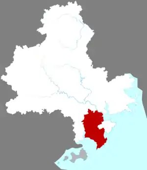 Расположен на правом (юго-западном) берегу одноименной реки, на левом берегу которой располагаются центральные районы Цюаньчжоу.
