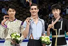 - Первый китайский фигурист, завоевавший медаль в мужском одиночном катании на чемпионате мира (Чемпионат мира 2016).