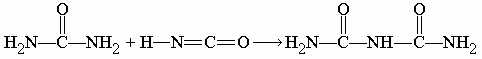 Далее циановая кислота реагирует с оставшейся частью мочевины, образуя биурет: