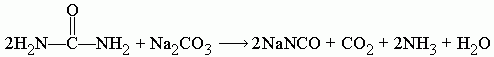 При сплавлении мочевины с карбонатом натрия Na2CO3 образуется цианат натрия NaNCO, углекислый газ CO2, аммиак NH3 и вода H2O: