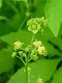 Цветки жёлтые, небольшие (менее сантиметра в диаметре), раздельнополые. Мужские цветки собраны в метёлки длиной 10—20 см, состоящие из 20—50 цветков.